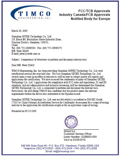 深圳市中檢通科技有限公司(Shenzhen SETEK Technology Co., Ltd.) 是一家專業從事電子電氣產品安全與電磁兼容檢測、測試、認證咨詢、技術咨詢與服務的獨立第三方機構。公司定位于為公共檢驗檢測服務、出具檢驗檢測報告、提供檢驗檢測需求咨詢等高新技術服務業。涉及的檢測領域有電磁兼容檢測、安規檢測、環保檢測、能效與可靠性檢測等5個大類的綜合性能檢測,同時提供專業的IOS客戶驗廠等國際管理體系認證咨詢、企業管理咨詢與培訓服務。能提供不同領域的檢測服務100多項檢測服務。涵蓋的產品包括:消費類電子、無線通訊終端產品、車載電子設備、音視頻/廣播電器、家用電器、照明設備、新能源電池、LED節能照明及玩具等產品領域。